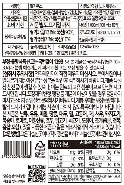 • 맑은농장 딸기주스 (100mlx10개)